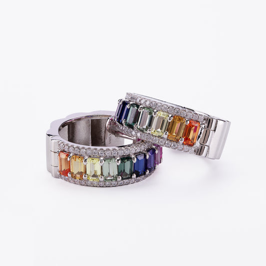 Rainbow Sapphire Eternity Ring, 18K White Gold Plated S925 Sterling Silver Band, LGBTQ+ Pride Ring, Multicolor Gemstone Full Eternity Band