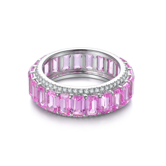 Light Pink Sapphire Eternity Ring Sterling Silver, Emerald Cut Band Dainty Stacking Ring, Pave Sapphire Ring Dainty Jewelry Birthday Gift