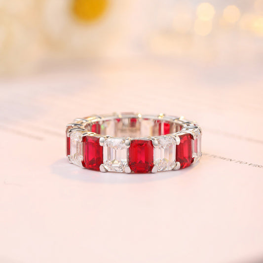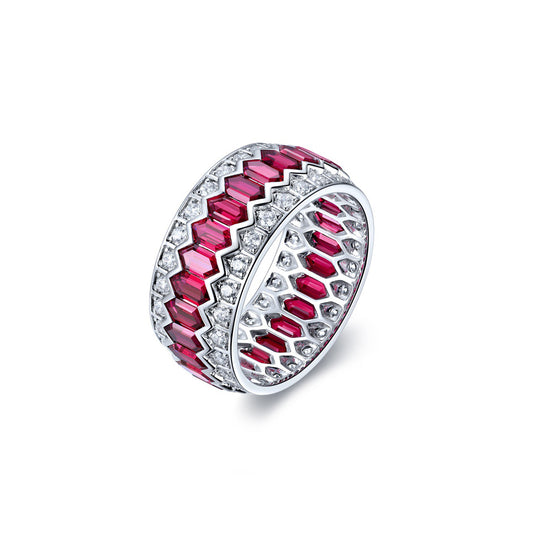 Ruby Wedding Band In S925 Sterling Silver,Full Eternity Hexagon Ring,Birthstone Band Ring,Stackable Gemstone Band, Anniversary Ring for Her