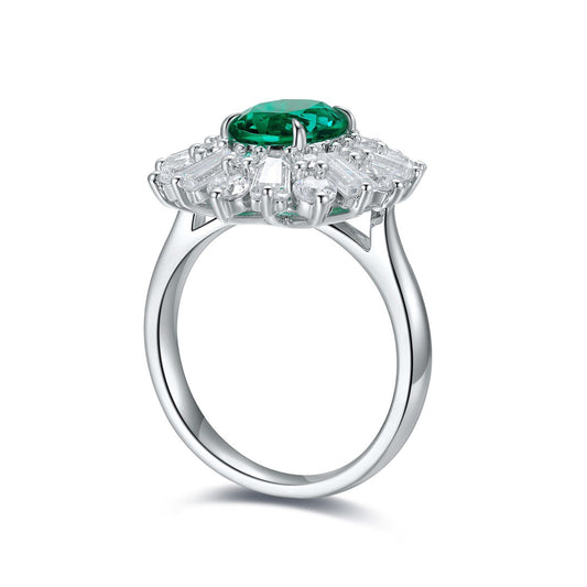 Emerald May Birthstone Ring – Solitaire Emerald Engagement Ring – S925 Sterling Silver Gemstone Ring – Baguette Emerald Statement Jewelry
