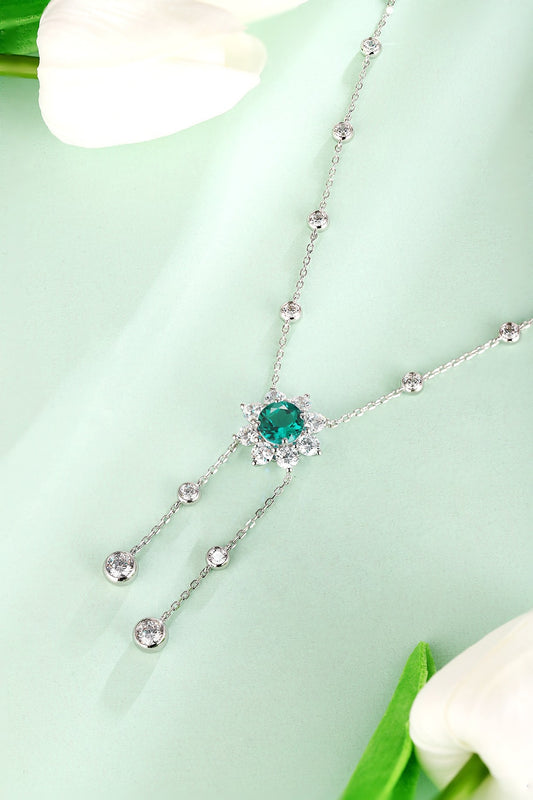 Green Emerald Sunflower Necklace in S925 Sterling Silver, CZ Diamond By The Yard Necklace, Dainty Emerald Birthstone Jewelry, Gift for Her
