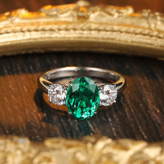 2.23ct Oval Cut 3-Stone Emerald Engagement Ring – Sterling Silver Vintage May Birthstone Ring – Green Gemstone Promise Ring for Women