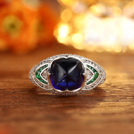 Vintage Sugar Loaf Sapphire Ring Old European Style Antique Edwardian Art Deco Engagement Ring Victorian Sapphire Proposal Ring Gift for Mom