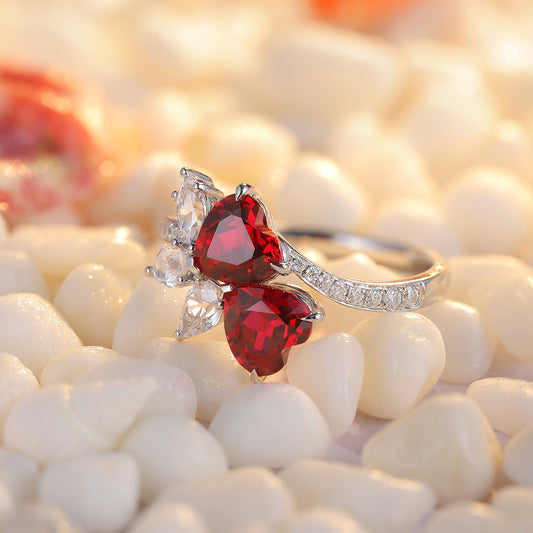 Heart Cluster Ruby Engagement Ring – Sterling Silver Vintage Art Deco Ring – Unique July Birthstone Promise & Anniversary Gift for Her