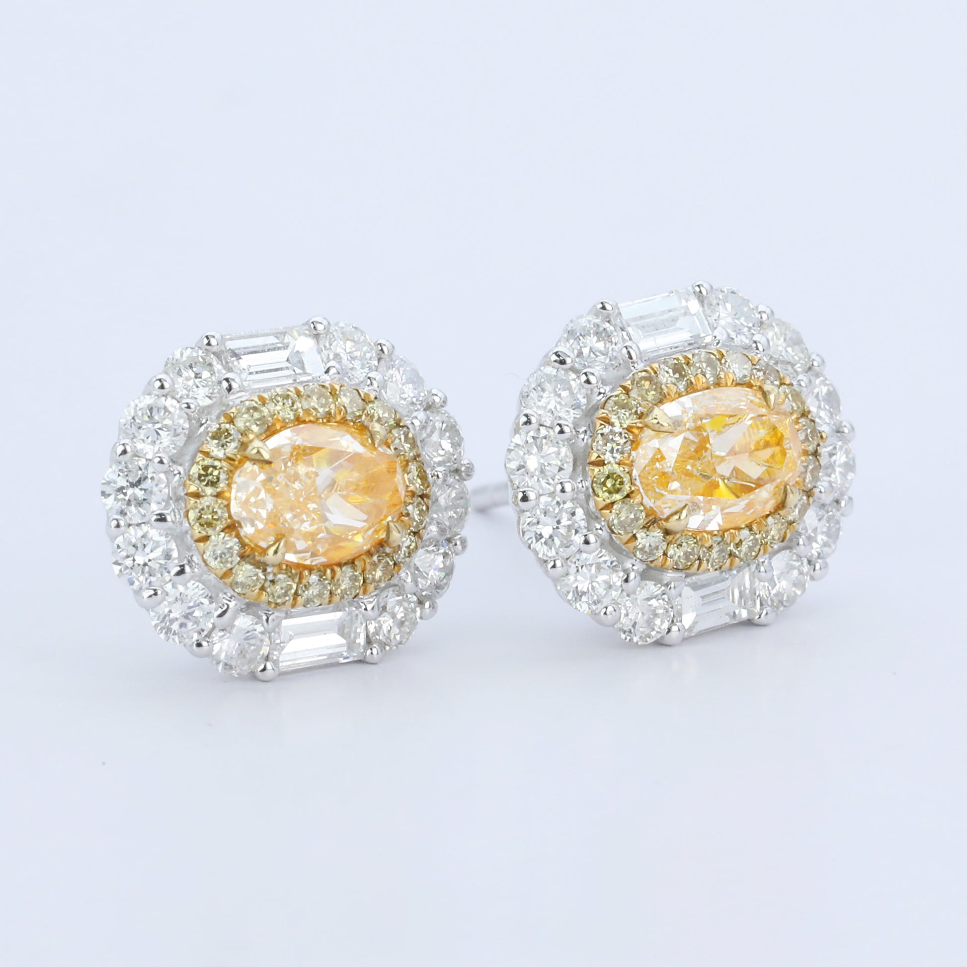 14K GOLD 2.04 CTW NATURAL FANY YELLOW DIAMOND & DIAMOND EARRINGS