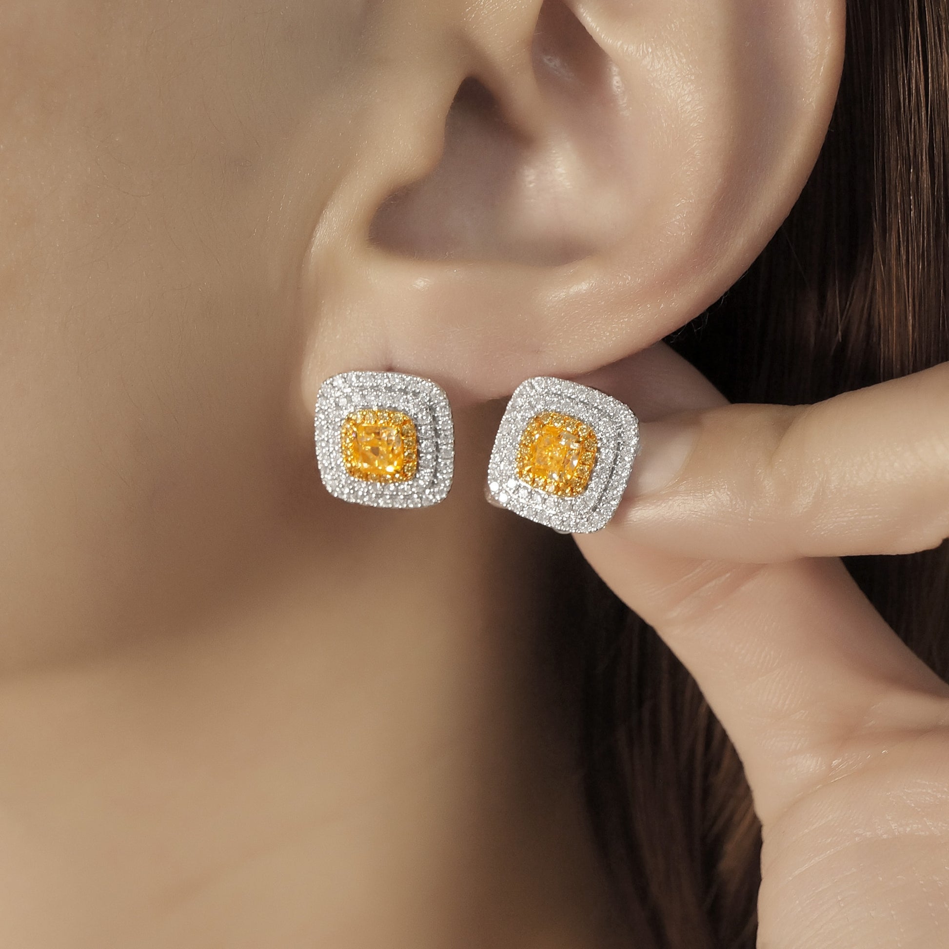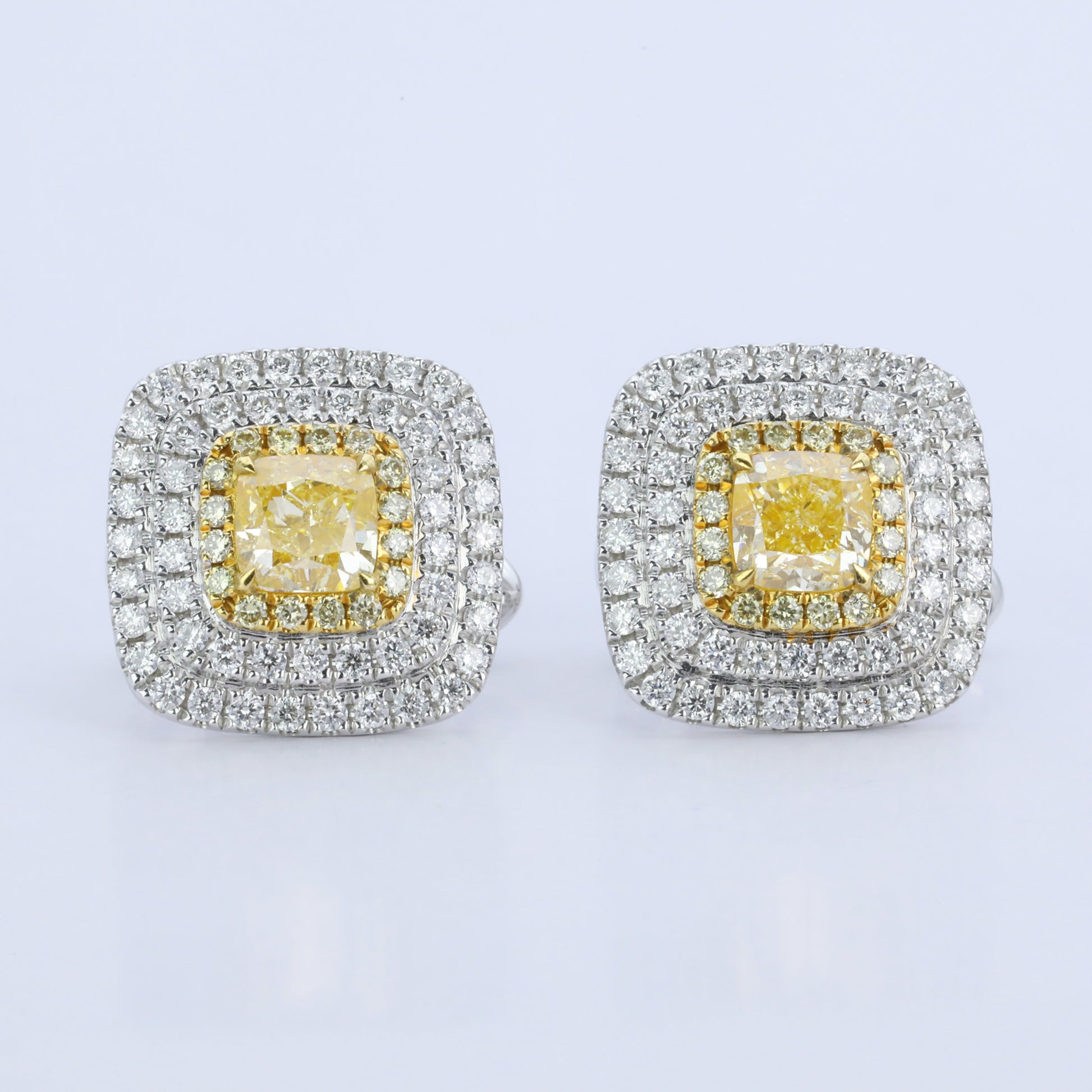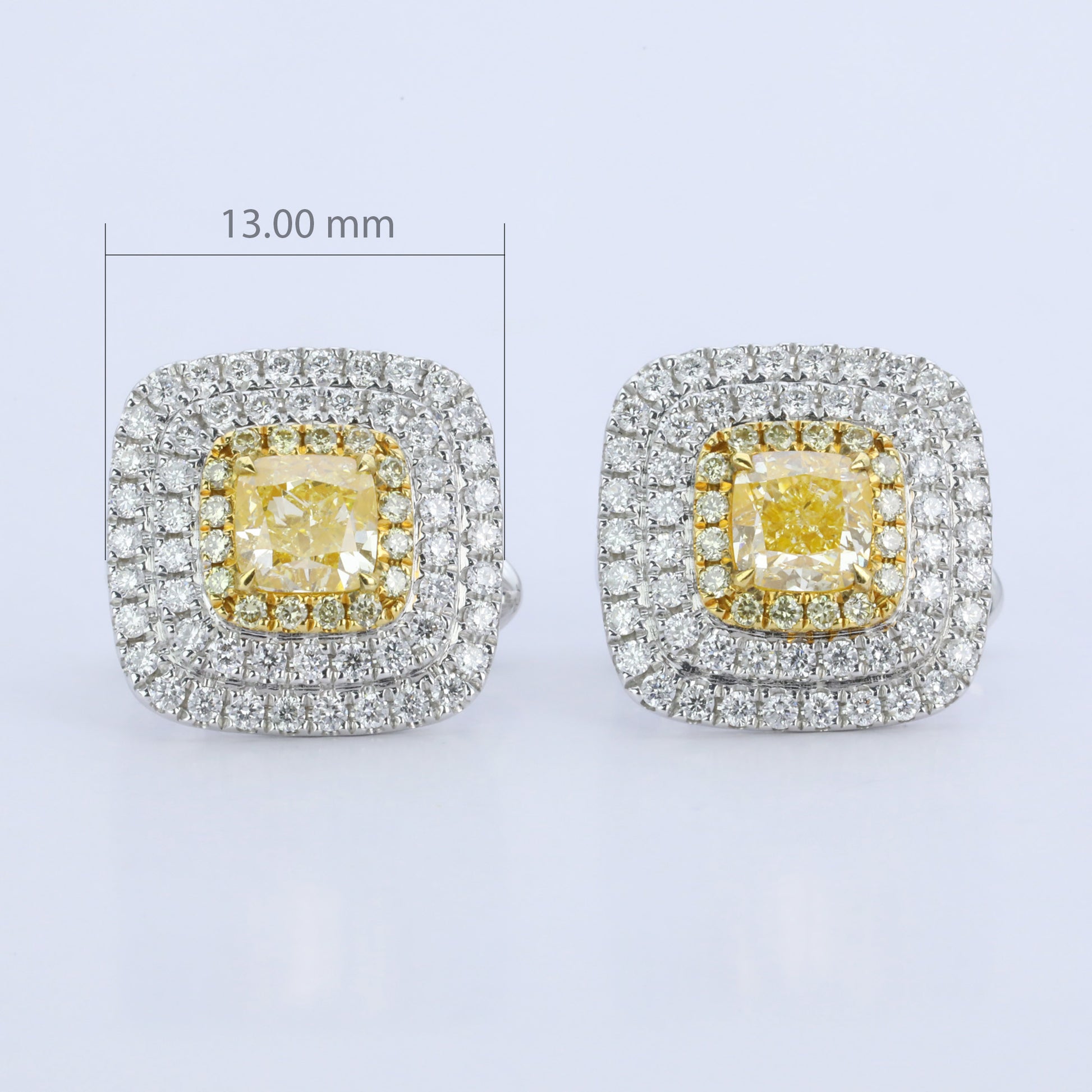 14K GOLD 2.26 CTW NATURAL YELLOW DIAMOND & DIAMOND STUD EARRINGS