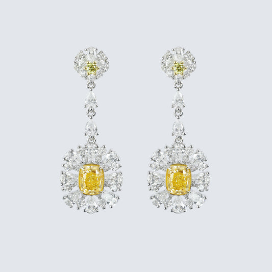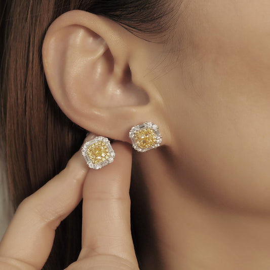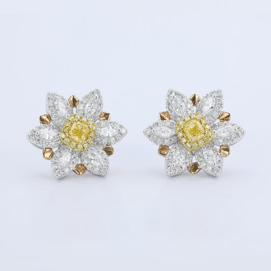 14K/18K WHITE GOLD 4.58 CTW NATURAL YELLOW DIAMOND & DIAMOND EARRINGS